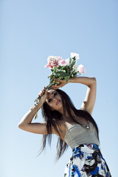 holding a broken old suitcase, coraline walked down the side of the road as i filmed her. the afternoon sun warmed our goosebump skin as we shot the next few pieces of the indie rose collection in the prickly grass. poor coraline had to endure cars driving back and forth beeping at us as we were working. when i scouted the location a few weeks earlier, it was completely deserted. today, it was the busiest it must have ever been.