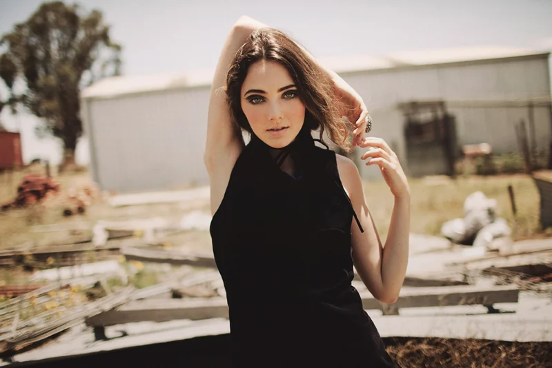 day one was a half day shoot. we planned to meet up in the beautiful wilderness of the blue moutains during the day, but pouring down rain and a broken car later, we get there just before dusk. the sun settled down as hair and makeup was finished and by the time we started shooting in this amazing abandoned castle, it was dark. we fired up the car's highbeams to shoot through the night. it was the middle of winter in sydney and poor coralie was freezing but was an absolute trooper and fought through the cold.